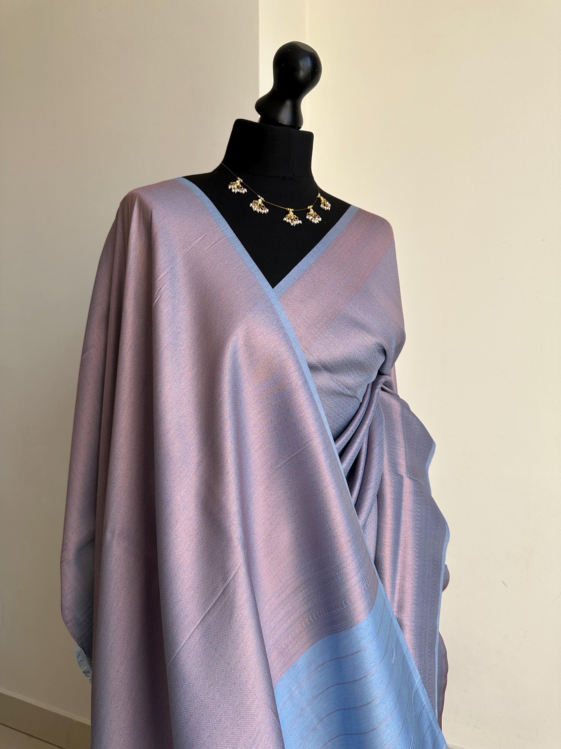 #dustyblue #metallic #bronzesaree #coppersaree #dustylilac #silksareelook #softsilksaree #sareetrends #kuberapattu