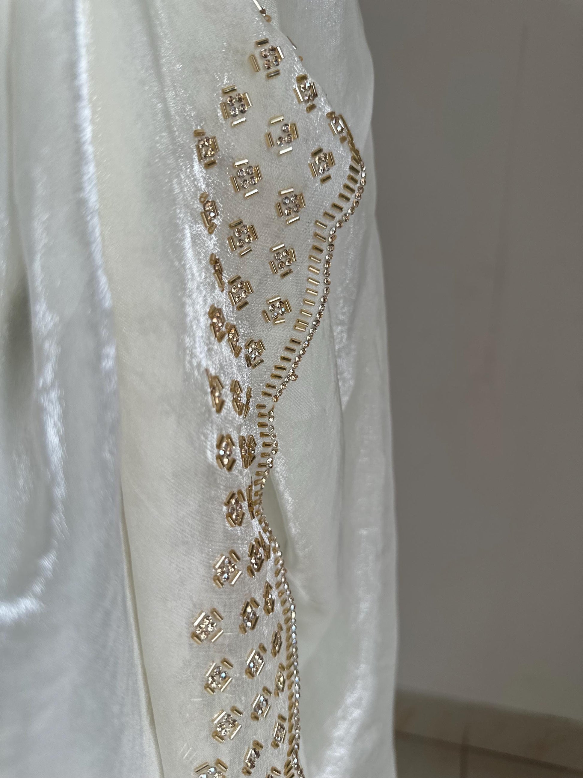 Stunning off white saree with embellished border. perfect for weddings, parties and events. statement saree that’s easy to drape and style.